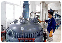 205车间 按GMP要求设计建设的原料药生产车间, 面积1100㎡,拥有两条生产线和十万级的精烘包洁净区。