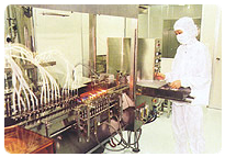 按GMP要求设计建设, 面积1000㎡, 拥有自动化生产线, 年生产能力可达1亿粒,常年生产无色无味的各种药品。